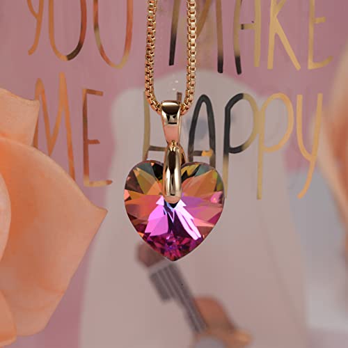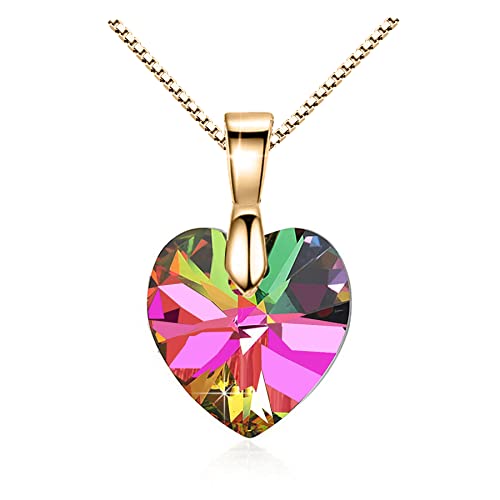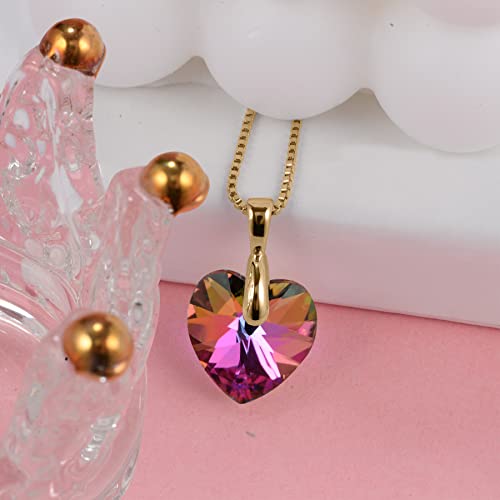 FULULAY - قلادة كريستال للنساء، قلادة قلب الحب مطلية بالذهب عيار 14 قيراط، لا تسبب الحساسية، هدايا مجوهرات لعيد الميلاد/الذكرى السنوية وعيد الام للام/الزوجة/الاخت/افضل صديق