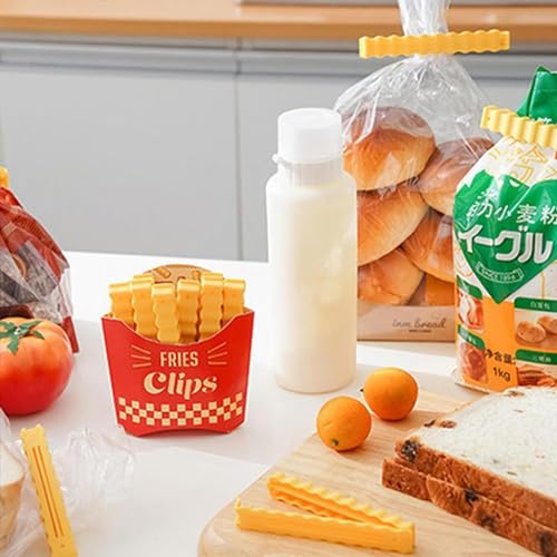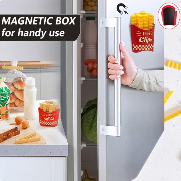 - 🍟【تصميم مبتكر على شكل بطاطس مقلية】: تأتي مشابك إغلاق الأكياس مع صندوق تخزين أنيق مصمم على شكل كيس تغليف البطاطس المقلية والجزء الداخلي من المشبك يعتمد على تصميم أخدود، مما يجعل الإغلاق محكمًا.