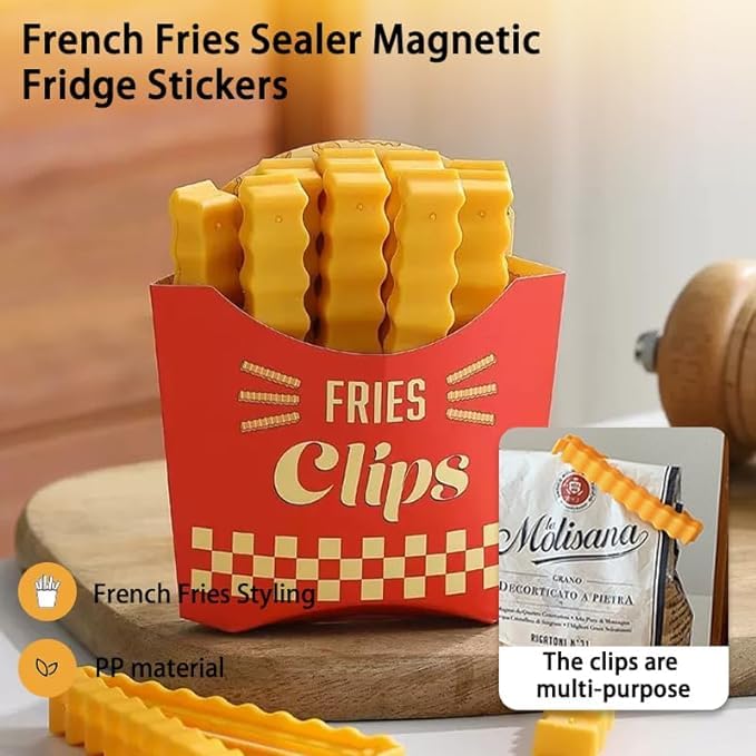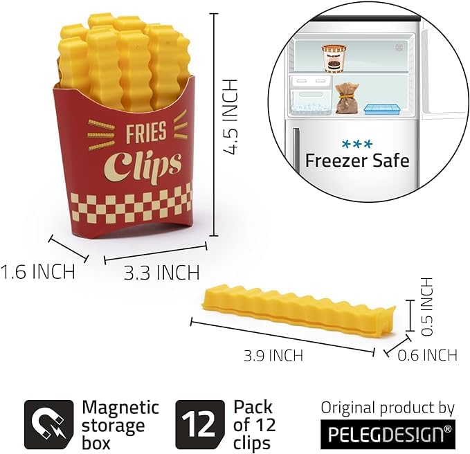LeeUBestlife - مشابك مغناطيسية من فن فرايز - مجموعة من 12 مشبك إغلاق الطعام للثلاجة، ملحقات مطبخ لطيفة وعملية، تصميم مبتكر على شكل بطاطا، اكياس وعبوات محكمة الامن، تحافظ على الطعام طازجًا ومنظمًا