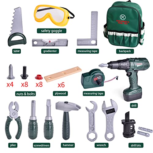 FUN LITTLE TOYS - مجموعة أدوات للأطفال من 35 قطعة، بما في ذلك مثقاب كهربائي لاسلكي، ملحقات أدوات اللعب التظاهري وشنطة أدوات متينة