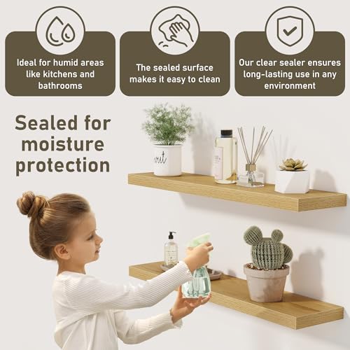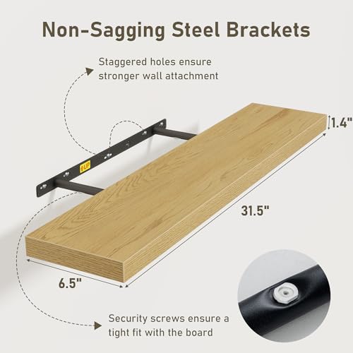 Fun Memories - مجموعة ارفف حائط عائمة مقاس 32 انش من فن ميموريز مكونة من 3 قطع، ديكور ريفي للمنزل والمطبخ وغرفة المعيشة، 32 × 6.7 × 1.4 انش، لون خشب البلوط