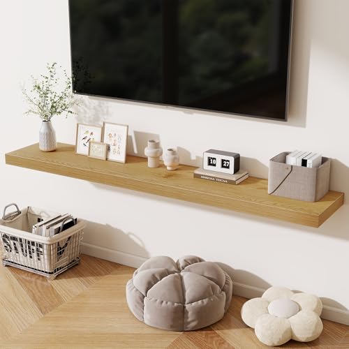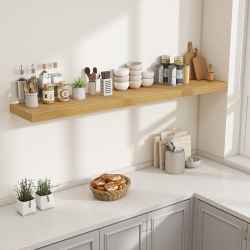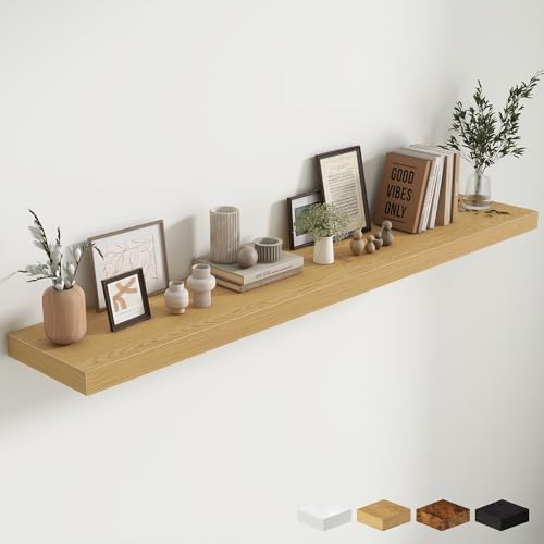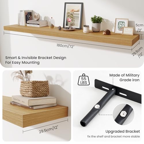Fun Memories - رف الموقد 72 انش من فن ميموريز، ارفف عميقة 12 انش للعرض والتخزين على الحائط، رف حائط خشبي ريفي، ارفف عائمة طويلة للغاية لغرفة المعيشة وغرفة الغسيل، خشب البلوط، مجموعة من قطعة واحدة