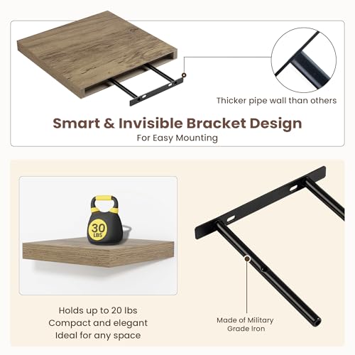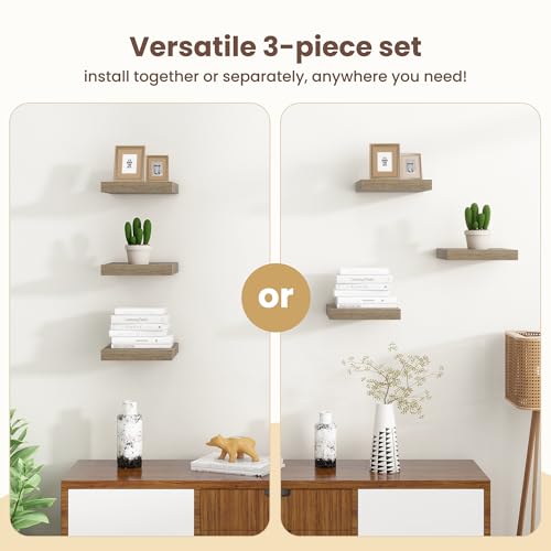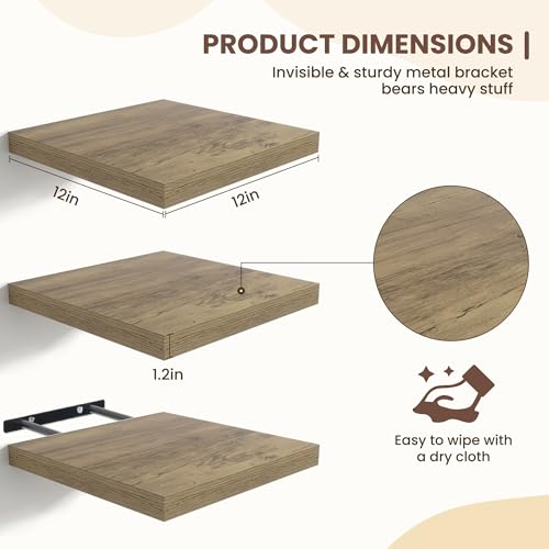 Fun Memories - ارفف عائمة للحائط من فن ميموريز - ارفف مربعة مقاس 12 انش مع دعامات غير مرئية، رف حائط صغير لغرفة المعيشة والحمام وغرفة النوم وديكور المطبخ، رمادي، مجموعة من 3 قطع