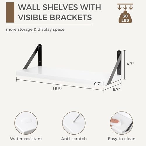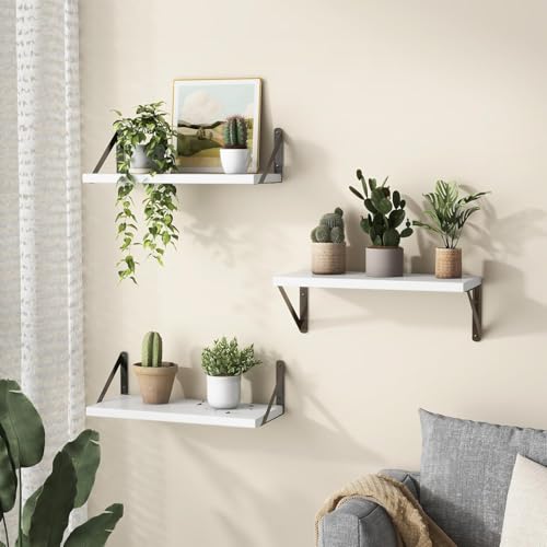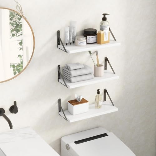 Fun Memories - أرفف حائط خشبية عائمة بيضاء لغرفة النوم للحائط، رف كتب خشبي صغير لغرفة الأطفال، أرفف حمام فوق التواليت من فن ميموريز، عبوة من 3 قطع، مقاس 42 سم