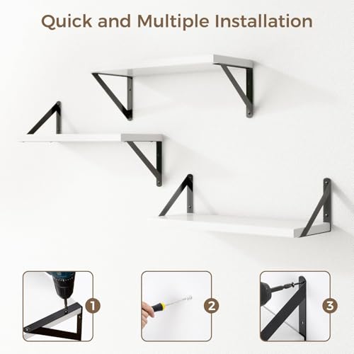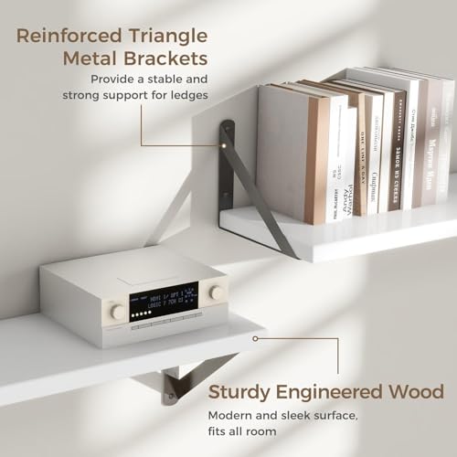 - دعامة شديدة التحمل: تم تصميم الأرفف الخاصة بنا لكل من الأناقة والقوة. دعامات معدنية متينة ومسامير دقيقة تحمل ألواح خشب ليفي متوسط الكثافة بسمك 1.78 سم، تدعم ما يصل إلى 13.5 كجم، مثالية لعرض الكتب والصور والمقتنيات والمزيد.