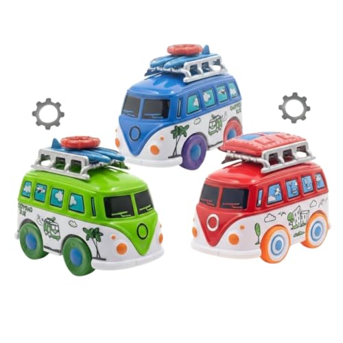 - التصميم الكلاسيكي: حافلة ريترو معدنية جذابة متوفرة بألوان أخضر وأحمر وأزرق، مع رسومات كرتونية جميلة على الجوانب
