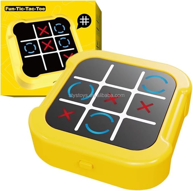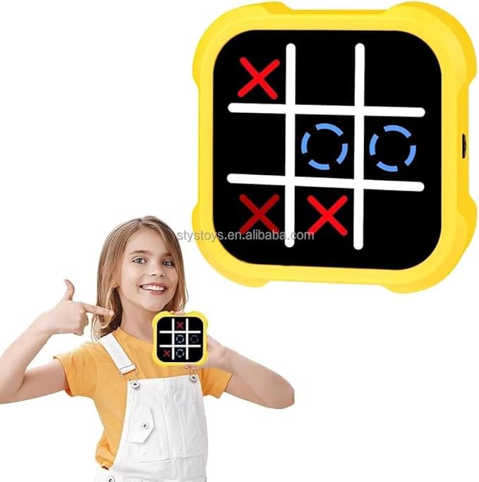 Generic - لعبة ممتعة اكس-او (تيك-تاك-تو) محمولة بإطار أصفر مع لوحة سوداء، لعبة أسرية ممتعة للأطفال