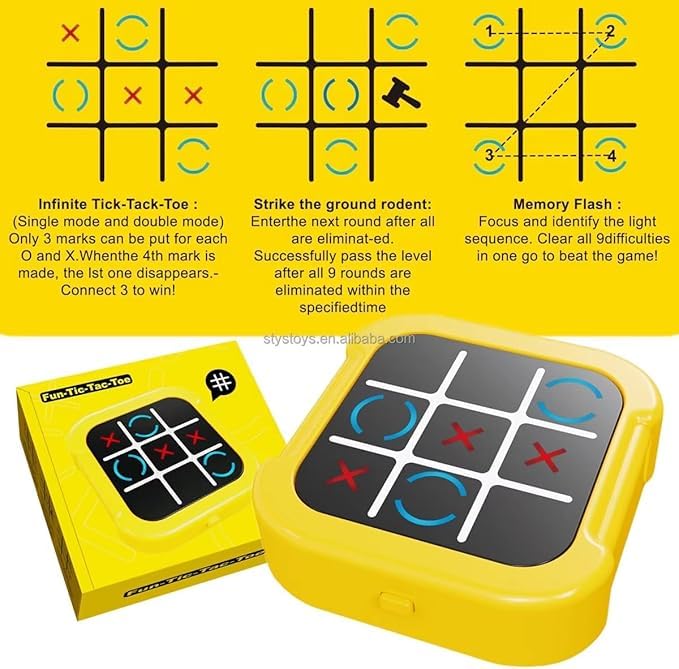 - تصميم عصري: لعبة اكس-او بإطار أصفر جذاب ولوح أسود أنيق مع علامات X-&O بألوان فريدة.