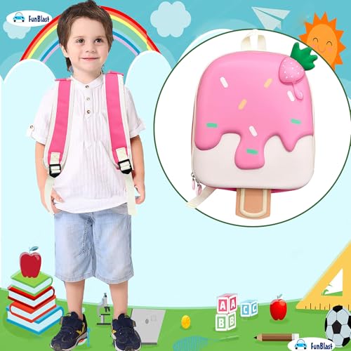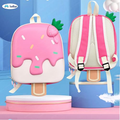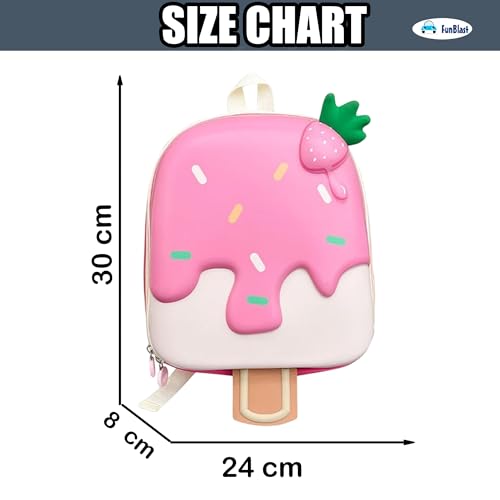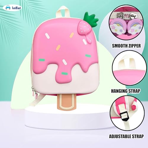 FunBlast - شنطة للأطفال بتصميم آيس كريم، شنطة ظهر صغيرة لمرحلة ما قبل المدرسة مناسبة للنزهات، خفيفة الوزن، مصممة للأطفال من الجنسين من عمر 2 إلى 5 سنوات من فن بلاست، مقاس 30 × 24 × 8 سم
