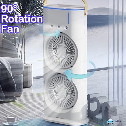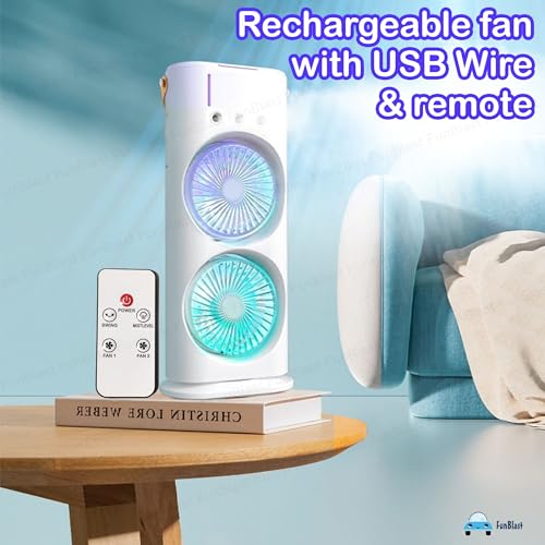 FunBlast - مروحة محمولة - مروحة رش مزدوجة الأطراف من فن بلاست، مروحة مكتب مع بخاخ رذاذ، مروحة تبريد للسفر، مروحة رذاذ الماء، مروحة تبريد صغيرة لسطح المكتب قابلة لإعادة الشحن بمنفذ USB للمكتب