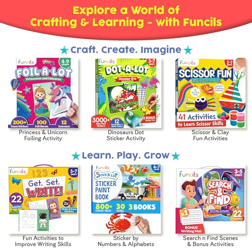 Funcils - فانسيلس كتاب تلوين بملصق ورقم للاطفال - كتاب تلوين من 30 لون | للسفر والطائرة وأنشطة السيارات للاطفال من سن 4-8 سنوات للبنات والاولاد | العاب فنية وحرفية، كتب احجية، مجموعة تعليمية تعليمية