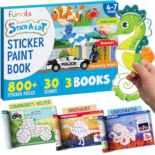 - 3 كتب ملصقات | 30 نشاطًا - كتب فنية تعليمية مثالية للأطفال من سن 3 و4 و5 و6 و7 و8 سنوات تتميز بـ 30 نشاطًا عمليًا عبر 3 كتب ذات طابع خاص بما في ذلك مساعدي المجتمع والديناصورات والمشاهد تحت الماء.
