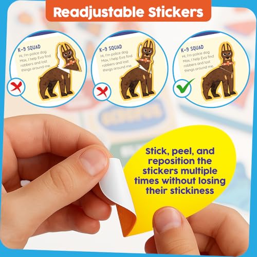 - ملصقات قابلة للتعديل - تتضمن أكثر من 800 ملصق عالي الجودة قابل للتعديل مصمم لأصابع الأطفال الصغار التي يمكن تقشيرها وإعادة وضعها وتصحيحها عدة مرات دون تمزيقها أو فقدان الالتصاق.