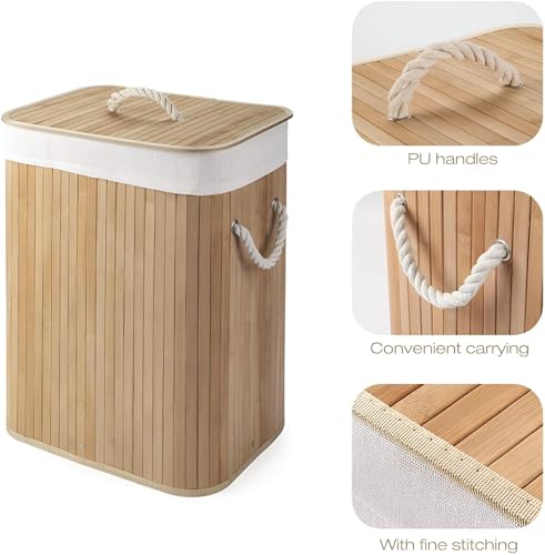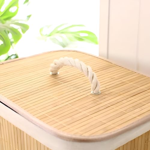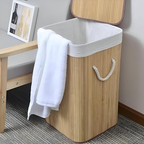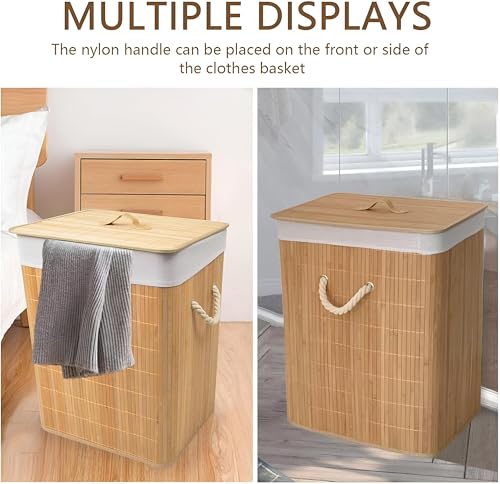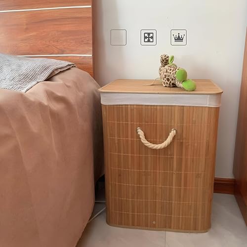 Generic - سلة عملية - سلة غسيل من الخيزران بسعة كبيرة 75 لتر، قابلة للطي ومستطيلة مع غطاء ومقابض للاستخدام العملي المعزز.