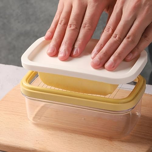 - تأتي حاوية الزبدة الشفافة مع غطاء، مما يسمح لك بتخزين الزبدة في الثلاجة دون المخاطرة بخلط نكهتها مع الأطعمة الأخرى. لا تحافظ هذه الميزة على مذاق الزبدة فحسب، بل توفر الوقت والجهد عندما يتعلق الأمر بالتقطيع والتخزين.