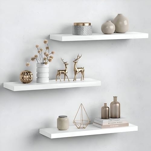 Generic - ارفف حائط عملية - مجموعة من 3 ارفف عائمة بيضاء باحجام متعددة (60، 50، 40 سم)، مناسبة لديكور المنزل، تخزين مريح في غرفة المعيشة والمطبخ والحمام وغرفة النوم