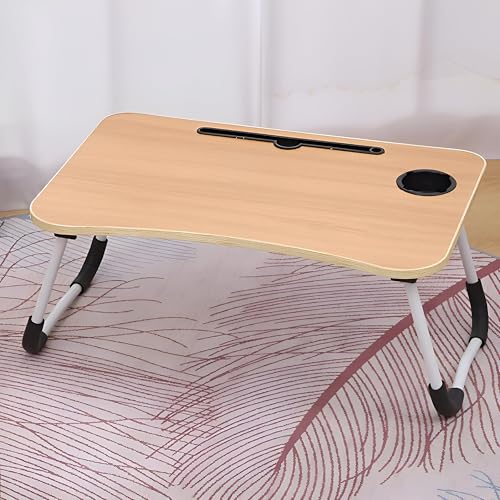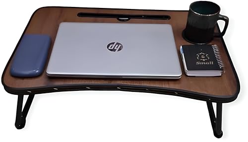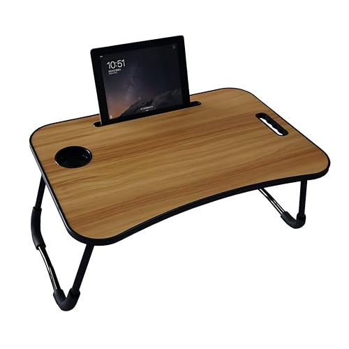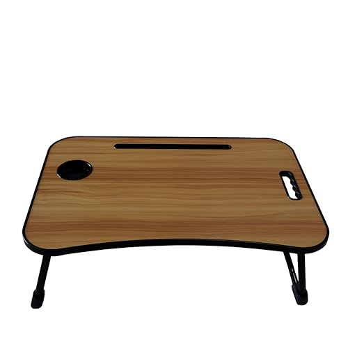 Generic - عربة لاب توب خشبية عملية - محمولة مع ارجل قابلة للطي وفتحات للاجهزة لتوفير مساحة عمل متحركة فعالة