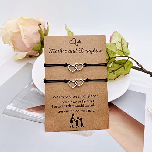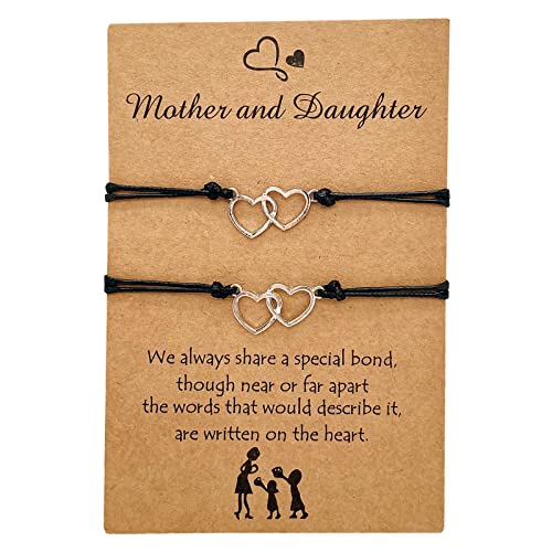 FUNGOS - فانجوس مجموعة اساور للام والابنة مكونة من قطعتين بتصميم قلب متطابق، هدية مجوهرات للامهات والابنة، اساور على شكل قلب/فراشة، هدية الابنة من الام، بدون احجار كريمة