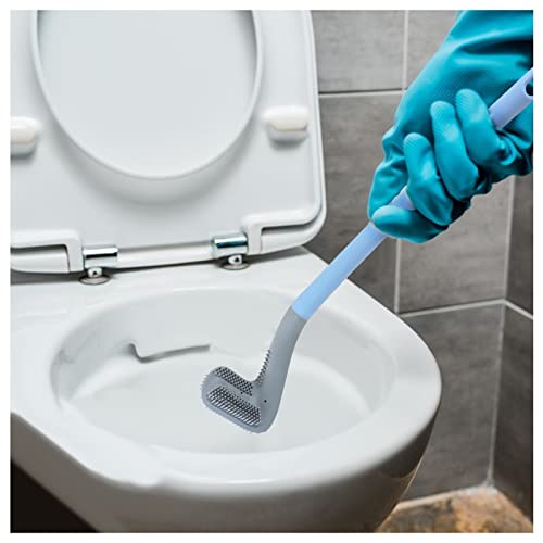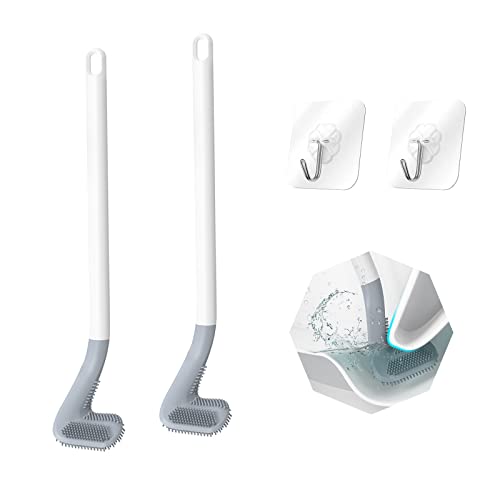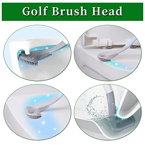 FuninCrea - فرشاة تواليت برأس على شكل مضرب الجولف بمقبض طويل من فونين كريا، مع خطافات تعليق سيليكون غير لاصقة للشعر من قطعتين، لون أبيض