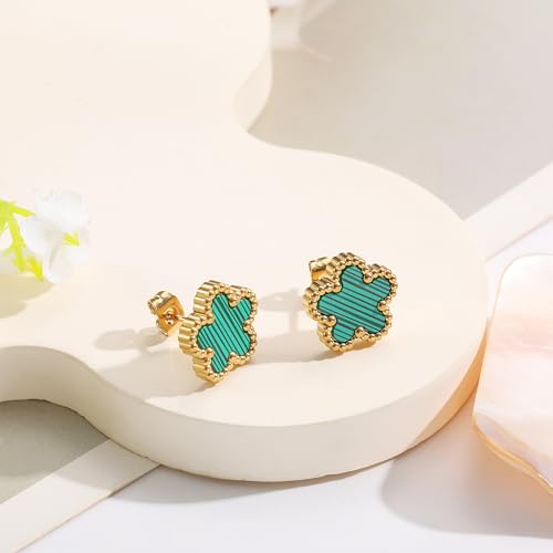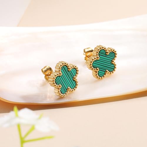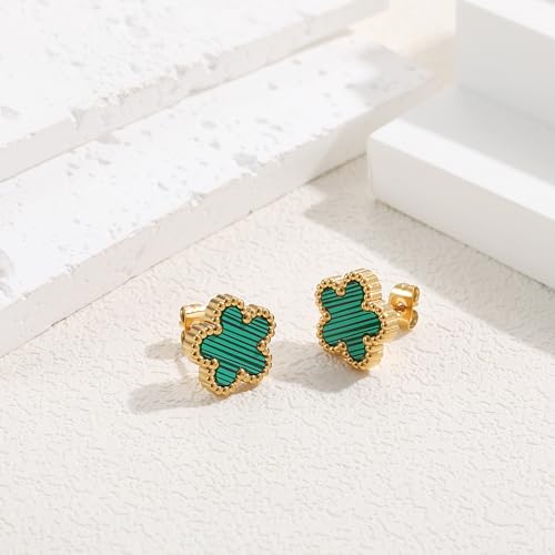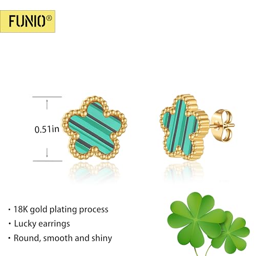 FUNIO - اقراط برسيم مطلية بالذهب عيار 18 قيراط للنساء، 4 اوراق شجر، اقراط متدلية على شكل اوراق شجر، اقراط متدلية بسيطة للنساء