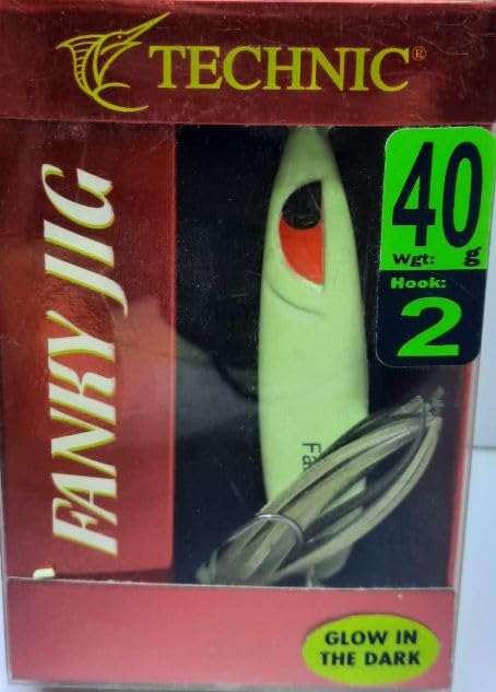 Generic - خطاف صيد فانكي جيج يتوهج في الظلام، خطافات صيد مساعد مزدوج مع اخطبوط، 40 جرام/ الهوك مقاس 2. لون ابيض مضئ