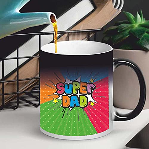 FUNKY STORE - مج قهوة سيراميك سحري مزين بطبعة Super Dad هدية للاب من الابنة من فانكي ستور، 11 اونصة (متعدد الالوان)