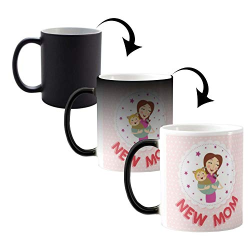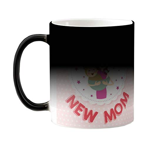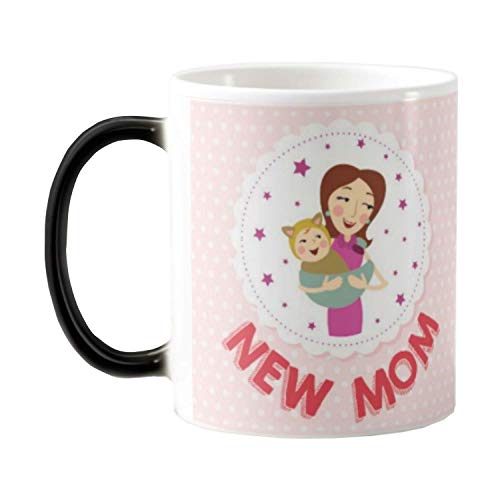 FUNKY STORE - مج متغير اللون من السيراميك سعة 11 اونصة مطبع بعبارة «New Mom» مناسب كهدية في عيد الام من فانكي ستور، متعدد الألوان