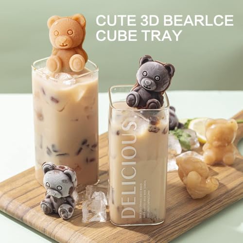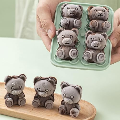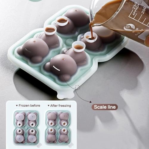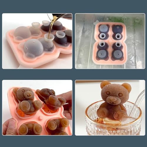 Generic - صانع مكعبات الثلج على شكل دب مرح، 4 قوالب سيليكون على شكل حيوانات لصنع ثلج فريد من نوعه لمشروبات القهوة والحليب والشاي، قابلة لإعادة الاستخدام ورائعة للعروض التقديمية الإبداعية