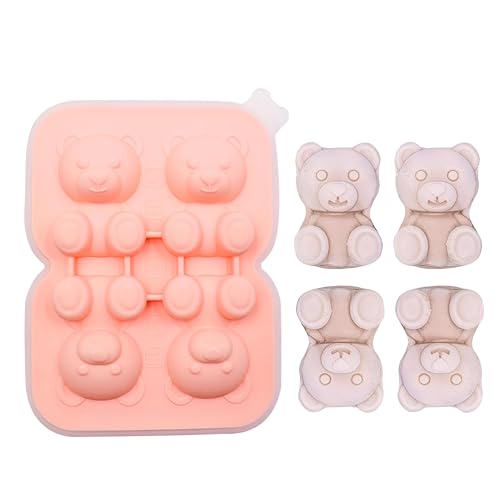 Generic - صينية مكعبات الثلج على شكل دب مرح، قالب سيليكون مبتكر لإنشاء 4 مكعبات ثلج على شكل دب رائعة مثالية للمشروبات والكوكتيلات والقهوة المثلجة، مزودة بغطاء قمع شفاف أخضر سهل الاستخدام (2 صنيه)
