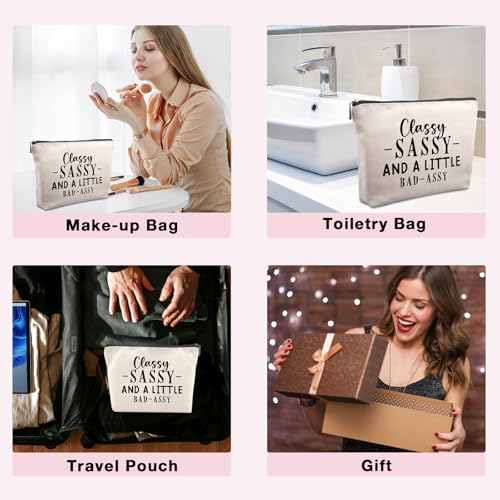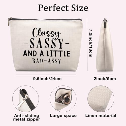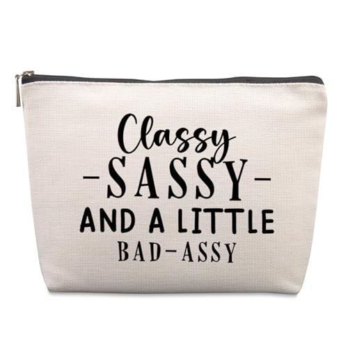 - 【هدايا مضحكة للأصدقاء】: حقيبة مكياج هدايا عيد الميلاد المضحكة هذه مصممة خصيصًا لموضوعات فكاهية ومطبوعة بعبارة "CLASSY -SASSY- AND A LITTLE BAD - ASSY"، مليئة بعناصر البساطة والأناقة. بالإضافة إلى ذلك، إنه المنتج الجميل لكل موسم طوال العام وأفكار هدايا صداقة مضحكة. مما يجعله إكسسوارًا أنيقًا وذا مغزى لصديقك المفضل!