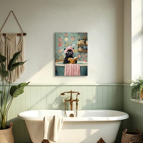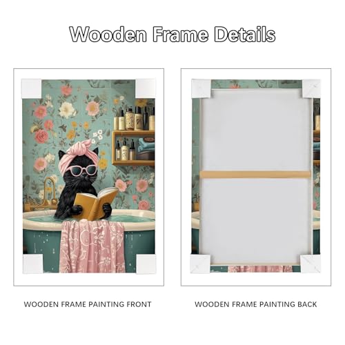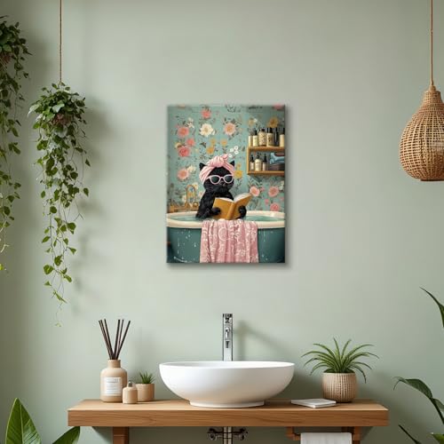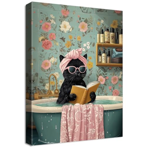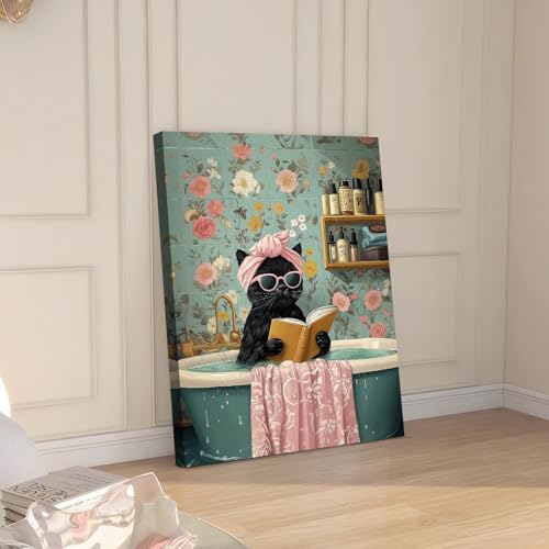 HALFLEMART - لوحة جدارية فن برنت بتصميم قطة سوداء مرحة، مناسبة لغرفة المعيشة والنوم والمطبخ والحمام وغرفة الأطفال، باللون الأسود، مقاس 30 × 40 سم