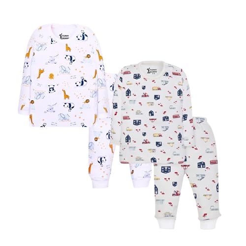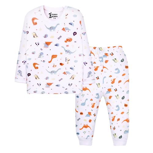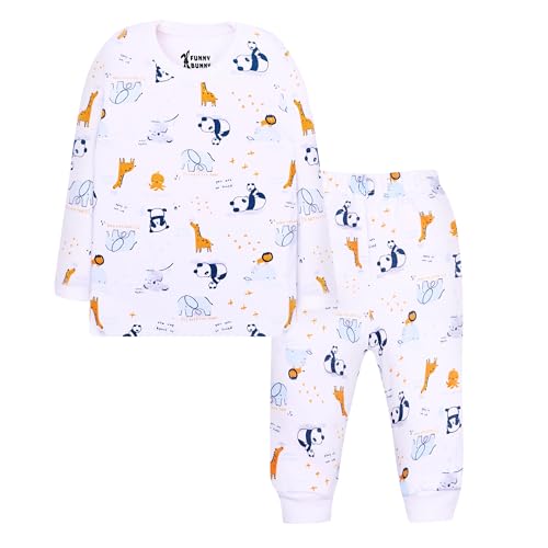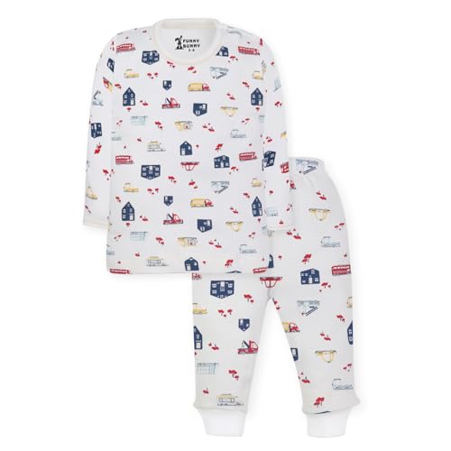 Funny Bunny - طقم ملابس نوم من القطن بأكمام طويلة وبناطيل من فاني باني، عبوة من 2 قطعة بطباعة بيضاء
