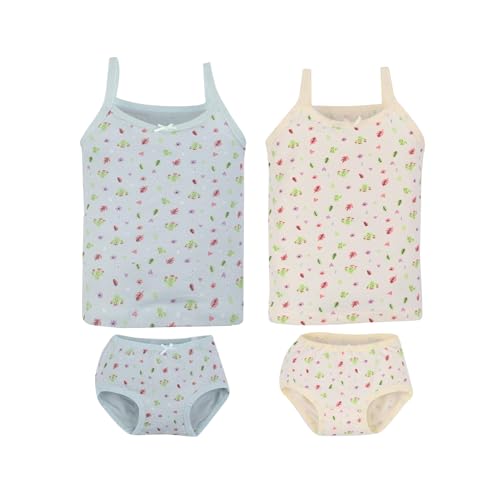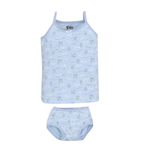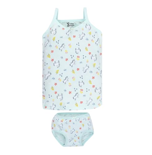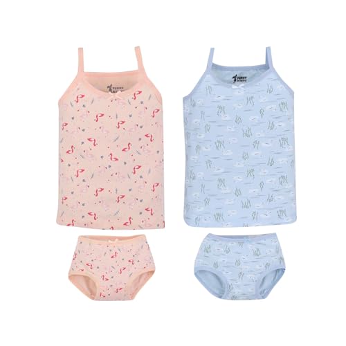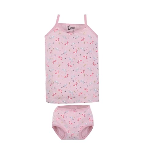 Funny Bunny - مجموعة ملابس داخلية قطنية للبنات من فاني باني مكونة من قطعتين بطباعة فلامنجو وارنب، توب كات وسروال داخلي