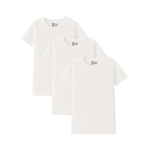 Funny Bunny - فانلة قطن بأكمام قصيرة للأولاد من فاني باني، عبوة من 3 قطع، لون أبيض