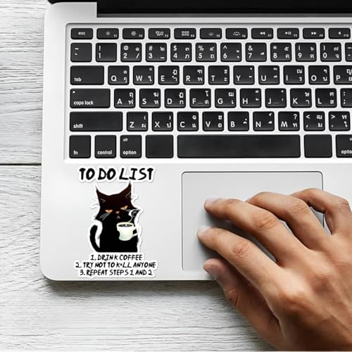 - مجموعة مكونة من ستيكرين - احصل على ستيكرين لاصقين متطابقين لقائمة المهام على شكل قطة كرتونية في عبوة واحدة. تصميم مرح ومناسب للجميع - مثالي لمحبي القهوة، وأيام العمل، وللحالات المزاجية الساخرة. متعددة الاستخدامات - مناسبة لأجهزة اللاب توب، والنوت بوك، والموبايلات، والمخططات، وأجهزة التابلت، والأغراض الشخصية. سهلة الاستخدام - تلتصق بسلاسة على الأسطح المستوية ويمكن إزالتها بسهولة. فكرة هدية مثالية - رائعة للأصدقاء، وزملاء العمل، والطلاب، أو أي شخص يحب الفكاهة.
