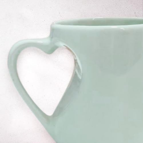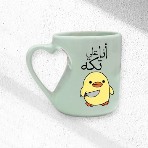 Generic - مج سيراميك مضحك بمقبض على شكل قلب بلون أخضر مينت وطباعة على جانب واحد بملصق مقاوم للماء هدية لها / له بتصميم أنا على تكة
