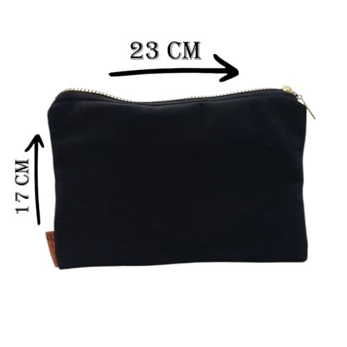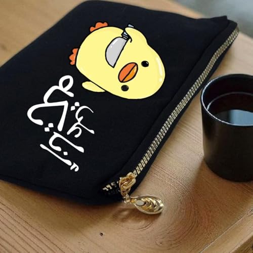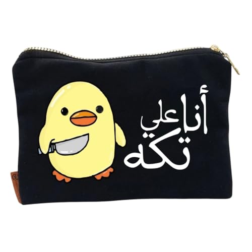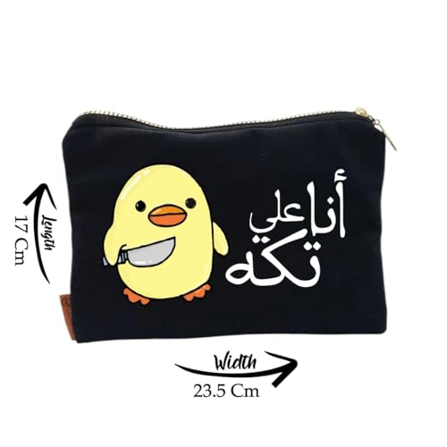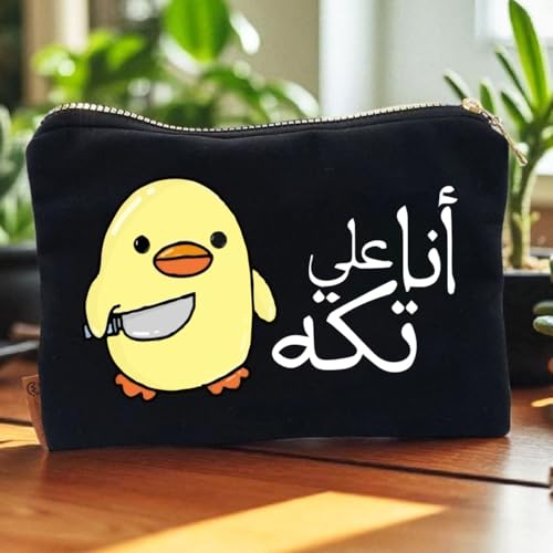 Generic - شنطة مكياج فكاهية مضحكة - مقلمة قماشية سوداء 17×23.5 سم مع بطانة مبطنة وسحاب ذهبي، شنطة مستحضرات تجميل ومنظم سفر للنساء والطلاب (انا على تك)