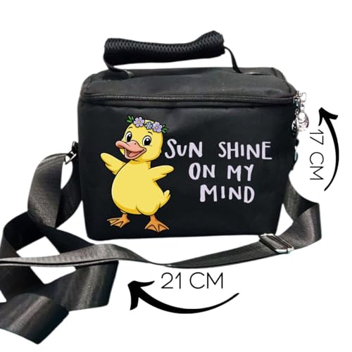 Generic - شنطة غداء بتصميم مضحك، شنطة غداء للمدرسة، حزام قابل للتعديل، خامة مبطنة، اسود، صن شاين على ذهني، لانش باج للاطفال للمدرسة، برنت