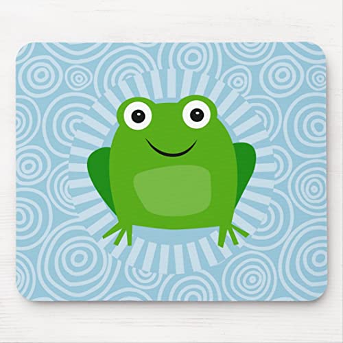 Generic - قاعدة ماوس بتصميم ضفدع مضحك ومرح مع خلفية بلون أزرق، مطاط