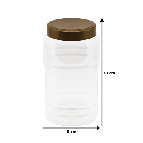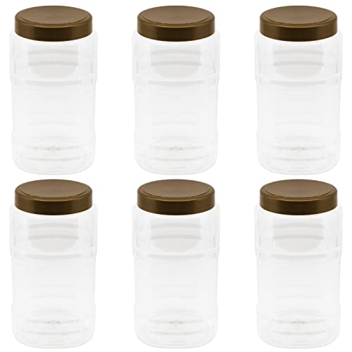 artistic - برطمان بلاستيك ابيض شفاف بغطاء ذهبي من فونوني، عبوة من 6 قطع - 1500 مل، قطر 9 سم، صحي، مكنسة كهربائية، قابلة لاعادة الاستخدام، اسطواني، ابيض