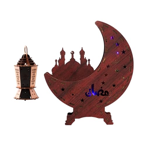 LC - ديكورات رمضان مبارك، ديكور منزلي مضيئ ورائع 15 سم + فانوس رمضان خشبي مضيء 15 سم من فنوني، FDK2 (موديل 8)