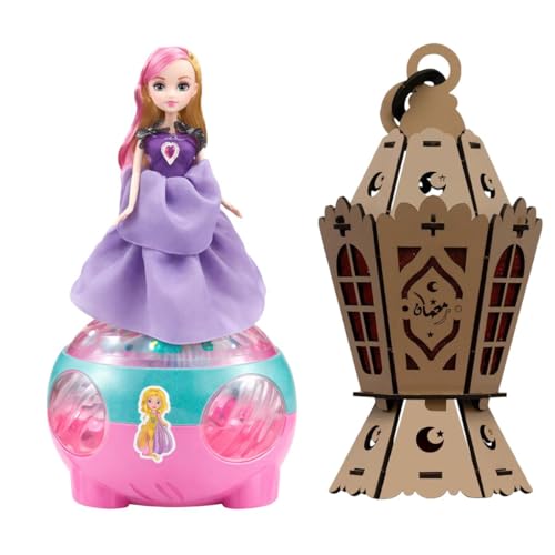 Generic - عروض رمضان من فنوني ( 2 قطع ) فانوس رمضان خشب كبير اغاني رمضان واضاءة عشوائي اللون + فانوس رمضان لعبة متحركة اصوات اغاني رمضانية واضاءة BB2 (موديل 47)