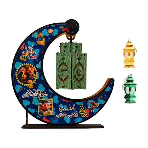 Generic - عروض رمضان من فنوني - ديكور رمضان استاند هلال فانوس رمضان خشب كبير مقاس 30سم في 30سم اغاني رمضان وانوار رائعة + 2 فانوس رمضان ميدالية مضيء FH5 (موديل 1)