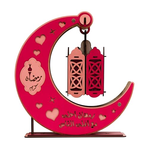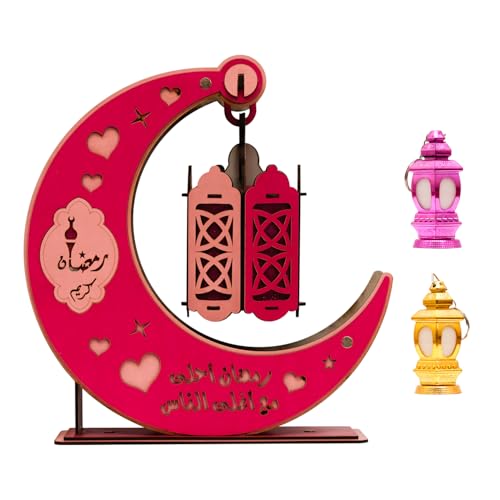 LC - عروض رمضان من فانوني - حامل ديكور رمضان، فانوس رمضان بتصميم هلال خشبي، أغاني رمضان وأنوار رائعة + 2 ميدالية بتصميم فانوس رمضان مضيء، مقاس كبير 30 سم × 30 سم، (موديل 9)، FH8