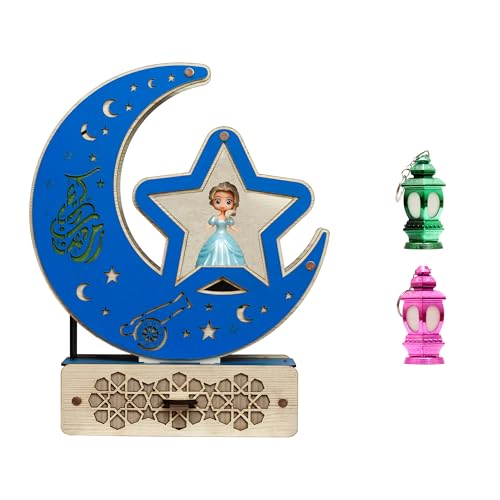Generic - عروض رمضان من فنوني - ديكور رمضان استاند هلال فانوس رمضان خشب كبير مقاس 30سم في 30سم اغاني رمضان وانوار رائعة + 2 فانوس رمضان ميدالية مضيء FH1 (موديل 6)