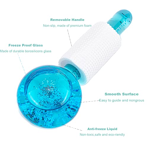 FUNPKIN - رولر كرات الثلج للوجه من فانكين- فعال للغاية اجل روتين الجمال اليومي امن في الفريزر مع مقابض الفوم يشد الجلد يقلل الانتفاخ وتقليله يعزز الدورة الدموية أزرق موصل بسلك كهربي
