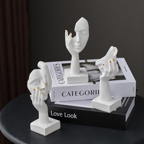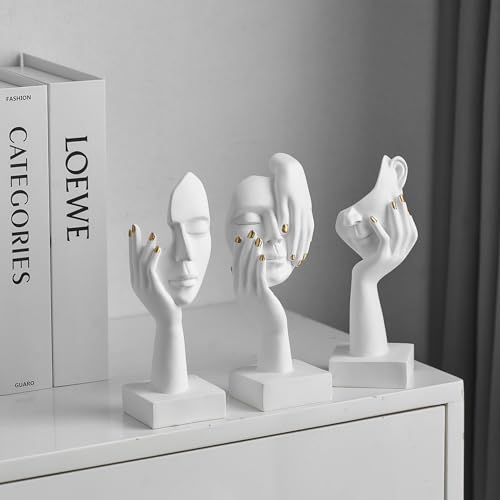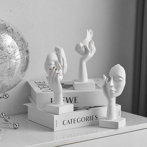FUNTEREST - تماثيل المفكر الأبيض ومنحوتات ديكور طاولة القهوة لتزيين المنزل، تماثيل عصرية لتزيين الطاولة لغرفة المعيشة وغرفة النوم والمكتب ورف الكتب من فنترست، 3 قطع