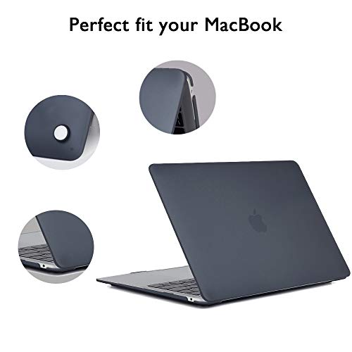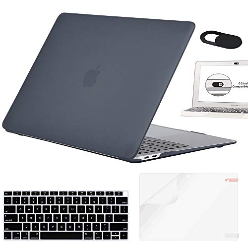 Funut - فونات حافظة لجهاز ماك بوك اير 13 انش 4 في 1 من البلاستيك الصلب مع واقي شاشة وغطاء كيبورد وكاميرا ويب غطاء ناعم غير لامع A1369 A1466 اسود