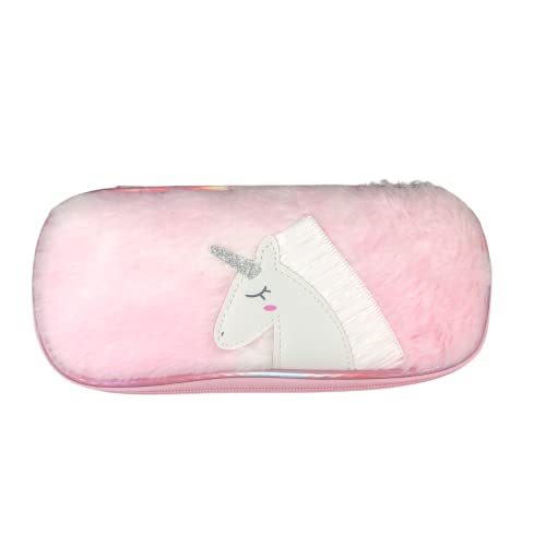 Generic - حافظة أقلام يونيكورن كبيرة من الفرو والجلد جينيريك باللون الوردي جلد صناعي زهري