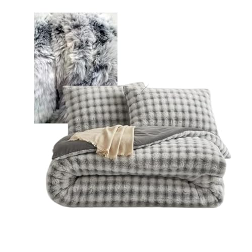 Generic - لحاف فرو مجوز 3 قطع، رمادي، 2.35 × 2.35 متر، يتضمن لحاف و2 كيس مخدة 50 × 70 سم